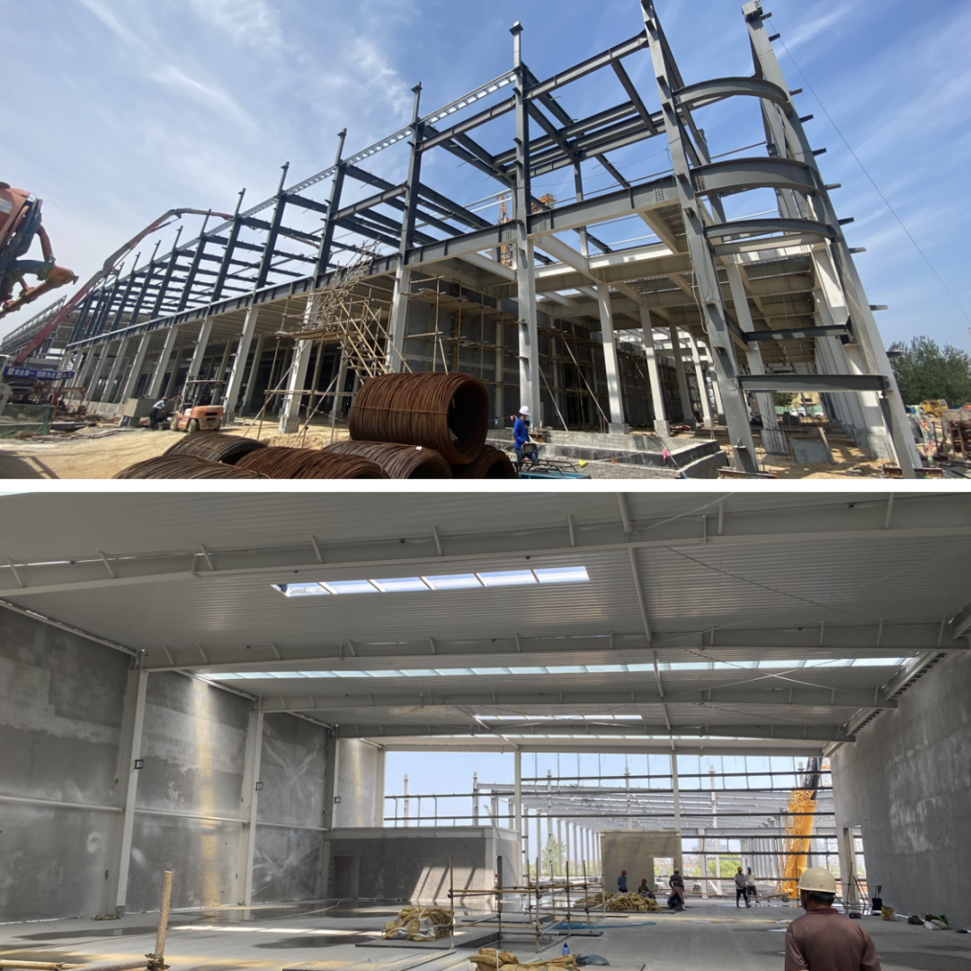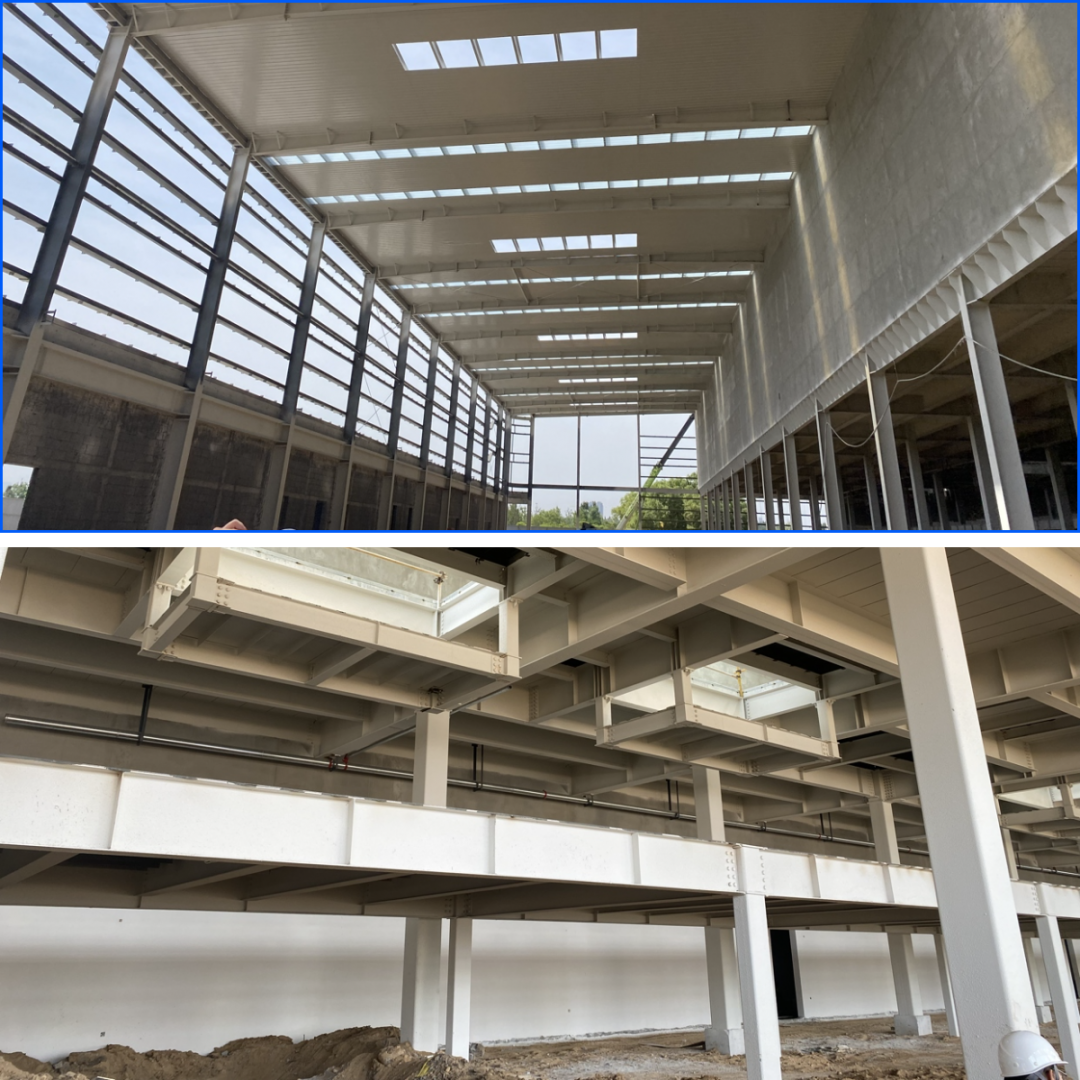 切中要害,方有顯效。但實(shí)際工程不能停留在紙面,還是要以事實(shí)為依據(jù),隨后我們帶領(lǐng)業(yè)主參觀了我們設(shè)計的多個全裝配多層鋼結(jié)構(gòu)廠房項(xiàng)目,包括道恩新材料項(xiàng)目、新浩陽軸承項(xiàng)目等,如下圖所示。