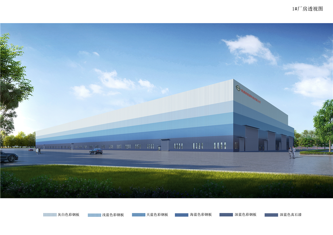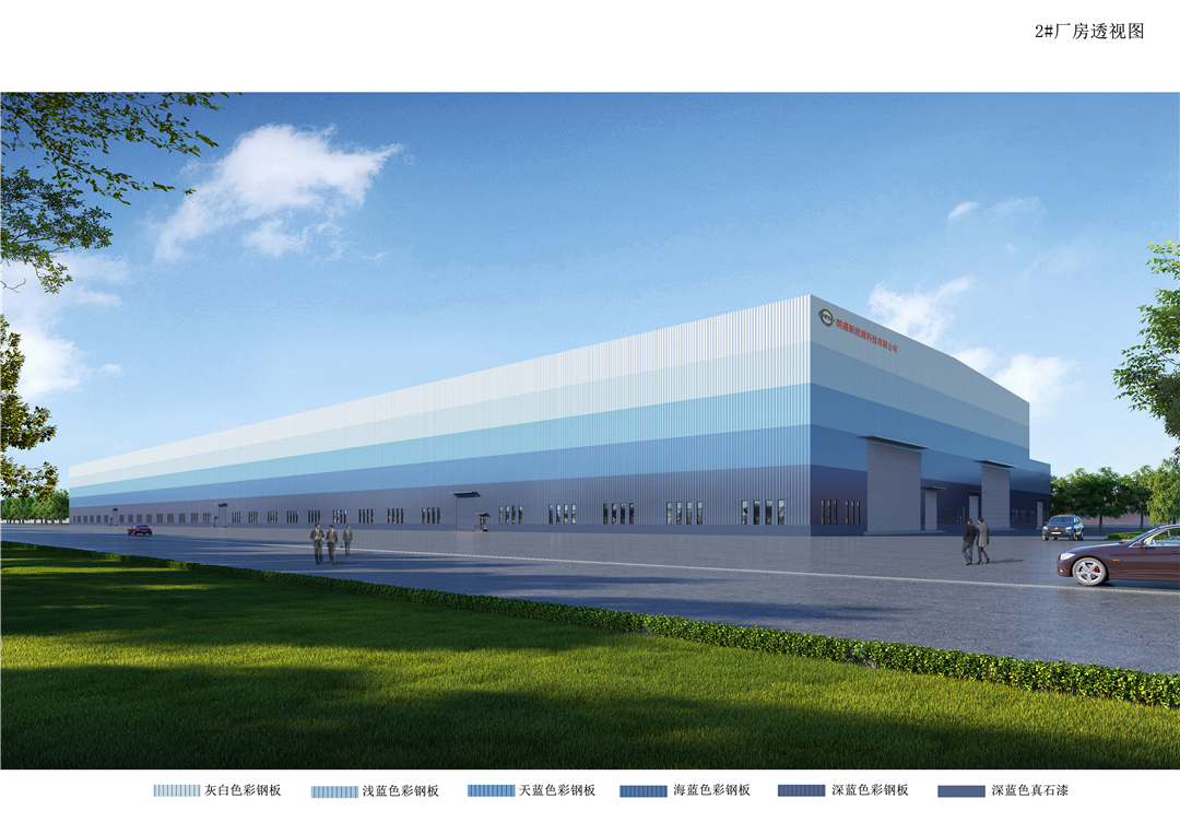 在建筑立面設(shè)計上,因為本項目是海上風(fēng)力發(fā)電項目,建筑外立面設(shè)計與產(chǎn)品相聯(lián)系提取海洋的設(shè)計元素,從深藍(lán)到淺藍(lán)的過度作為建筑的主要外墻顏色。在不增加工程造價的基礎(chǔ)上,使建筑物更加簡潔、美觀、大方。因葉片生產(chǎn)過程中需要廠房在固定高度的位置溫度控制在18度左右,所以我們在立面設(shè)計上盡量減少開窗面積,采光通風(fēng)主要以屋面采光帶及薄型通風(fēng)器解決。