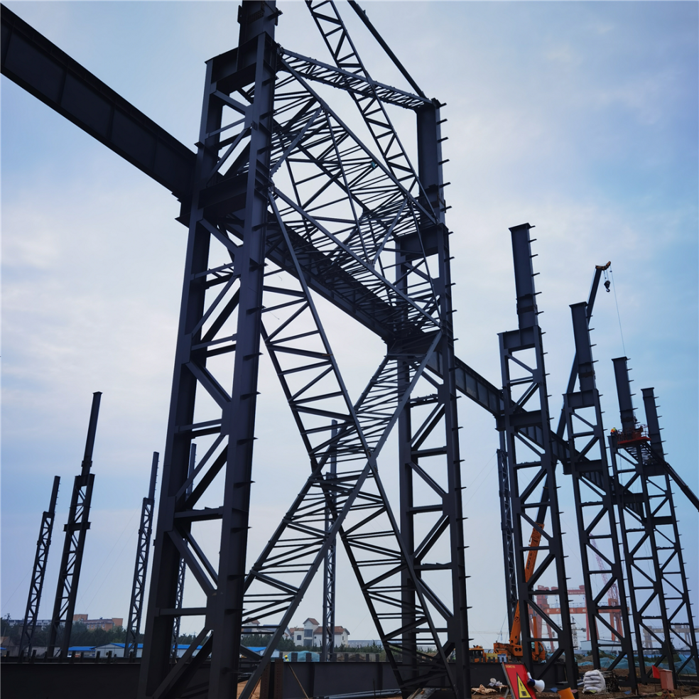 本項目一期共建造2棟廠房,其中1#廠房建筑面積5.6萬平方米,2#廠房4.8萬平方米。廠房跨度52米,單體吊車噸位60t,起吊高度20米,檐口高度28.5米,為重鋼廠房。