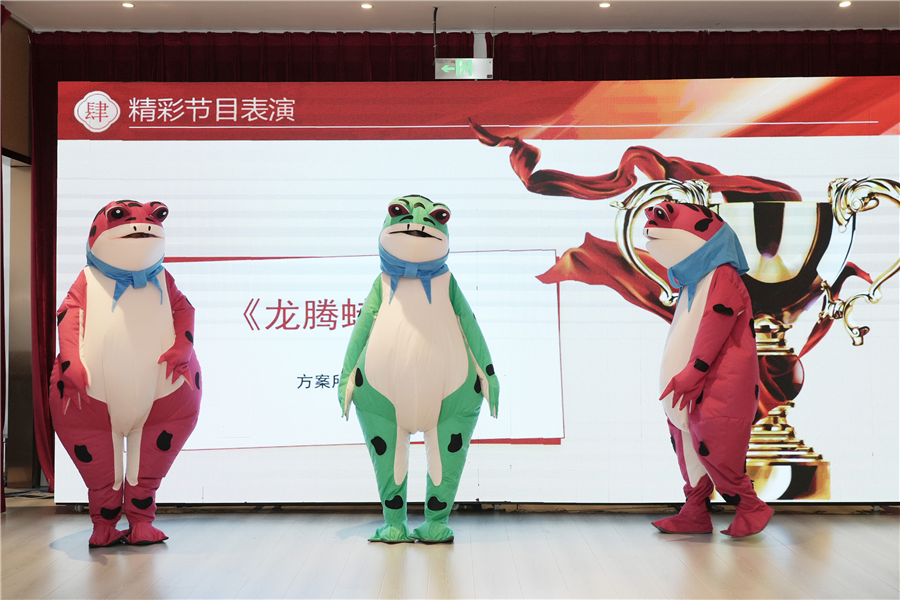春回大地,萬象更新。今天,我們都是種花人,在這個喜慶的日子,播種美好心愿。首先,有請方案所團隊帶來精彩表演—《龍騰蛙跳》
